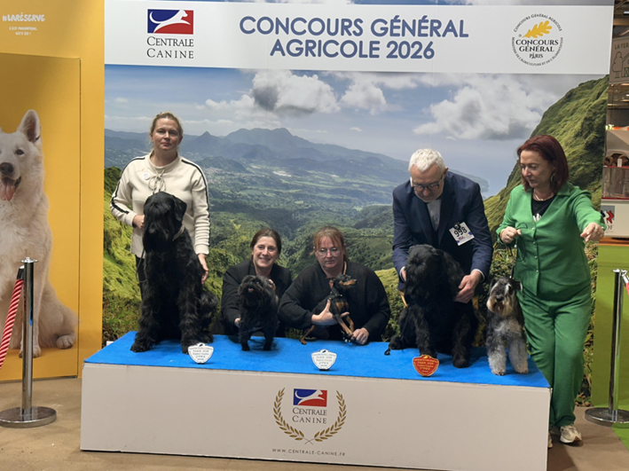 • Schnauzer Géant noir en classe Champion Femelle Qala de Pichera à Sylvain Hussenet (1ère du Groupe 2 Champion Femelle)